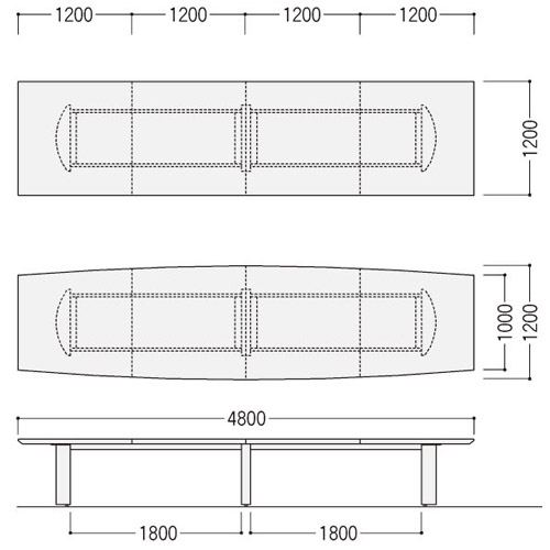 | 木製会議テーブル 拡大画像01 <オフィス家具センター> MT025148T-01 W4800のテーブルサイズ詳細です。 木製会議テーブル NHKシリーズ 角形 W4800×D1200×H700役員用 | |