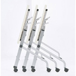 | パネル付タイプの平行スタックテーブル。キャスター付で移動も簡単、効率よく収納できます。 |