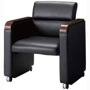 | 黒革と肘部のローズカラーが上品な印象の一人掛けソファ 応接室、会議室、役員室など高級感のある空間に |