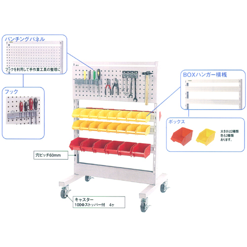 | progless.com/funiオフィス家具 工場・物流用家具 パーツハンガー 間口900サイズ 片面・移動式 上は参考説明用写真ですので、色等は本体説明ページをご確認下さい。 | |