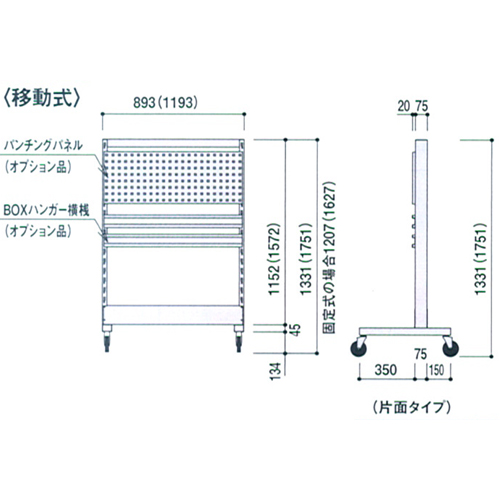 パーツハンガー 間口900サイズ 片面・移動式 | ||